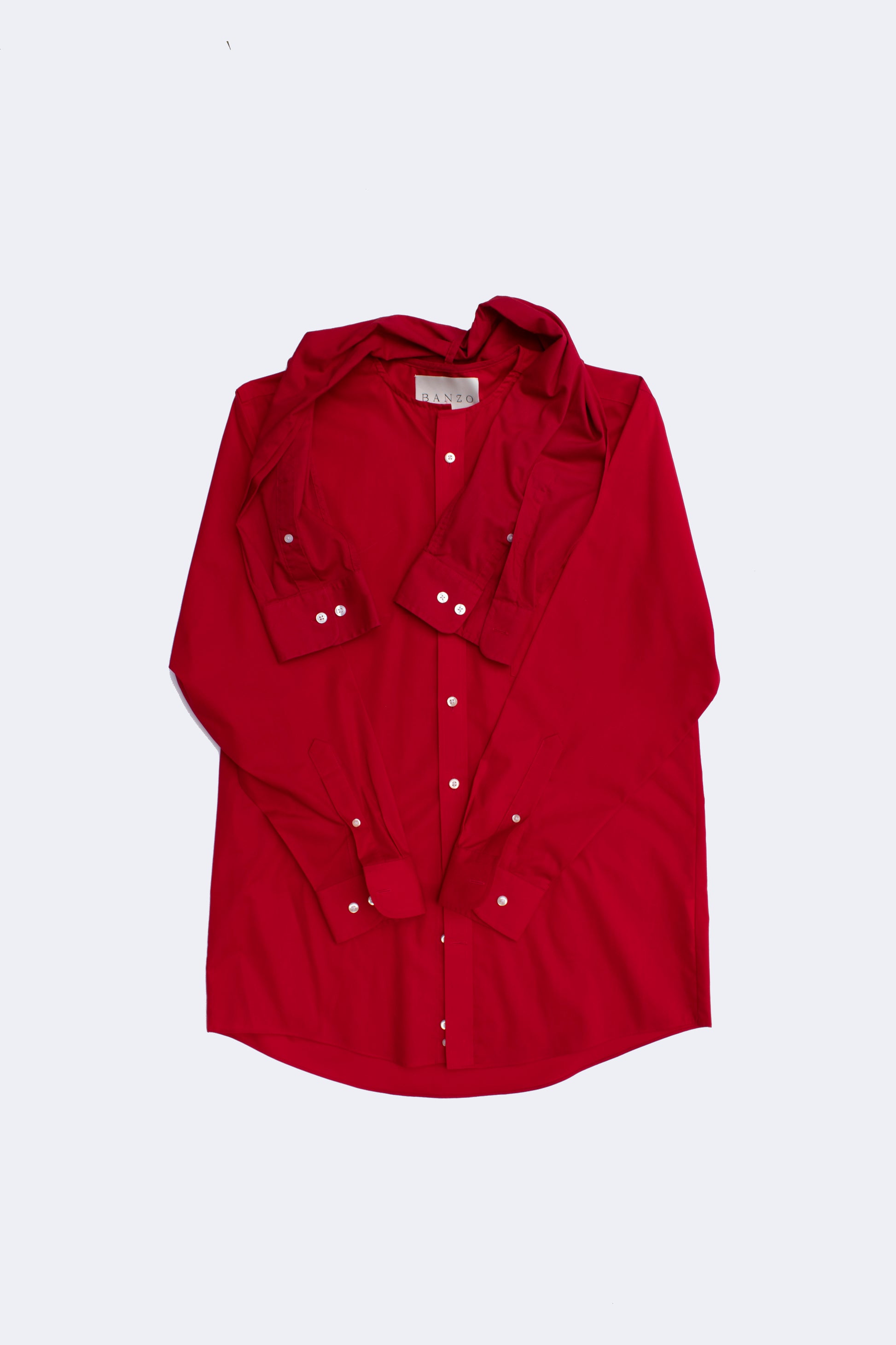 Made from two re-worked cotton shirts, this piece features a detachable collar crafted from sleeves.